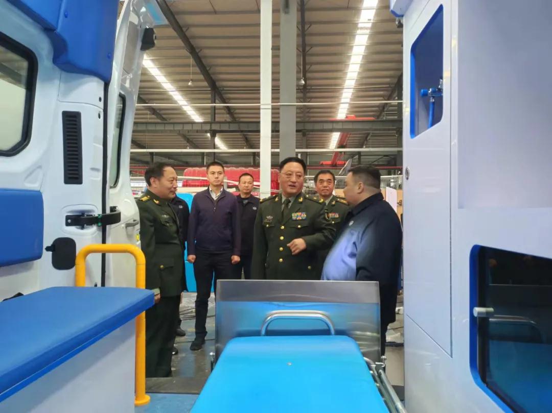 視察組參觀的第二站,來到了程力汽車集團應急保障車生產車間調研,對程力野外露營車、淋浴車、餐車、被服洗滌車、電源搶險車、排澇車等軍民兩用裝備的生產工藝與產能,表示出濃厚的興趣;當首長們了解到中國神舟十三返航英雄們,所用的地面后勤保障醫監醫保醫療專用車,也是程力公司所生產的情況后,大加贊許。